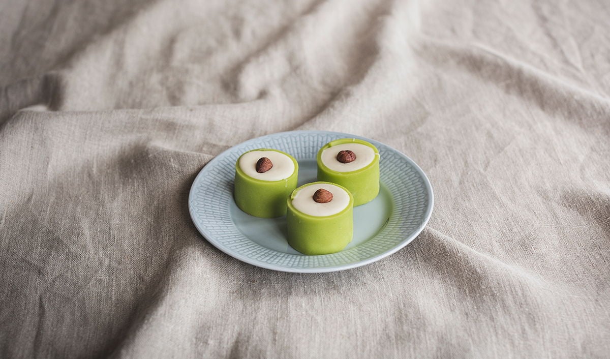 Hasselnötstryffel: (socker, vegetabilisk olja (palm, shea), malda HASSELNÖTTER(15,9%), skumMJÖLKspulver, emulgeringsmedel solroslecitin, vanillin), marsipan (socker, MANDEL, glukos, konsistensgivare sorbitol, invertsockersirap, konserveringsmedel E 202, färgämne E 131 och E 160a), konditorimargarin palmfritt (emulgeringsmedel (E471, E322), emulgeringsmedel (E475), färgämne (E160a), naturlig arom, rapsolja, salt 1,2%, surhetsreglerande medel (E330), vatten, vegetabiliskt fett (palm, kokos)), ÄGG, VETEmjöl, KORNmalt, HASSELNÖTTER, fuktighetsbevarande medel (sorbitol), glykossirap, invertsockersirap, MANDEL, Mjölbehandlingsmedel (E300), socker, vatten.Näringsvärde per 100g