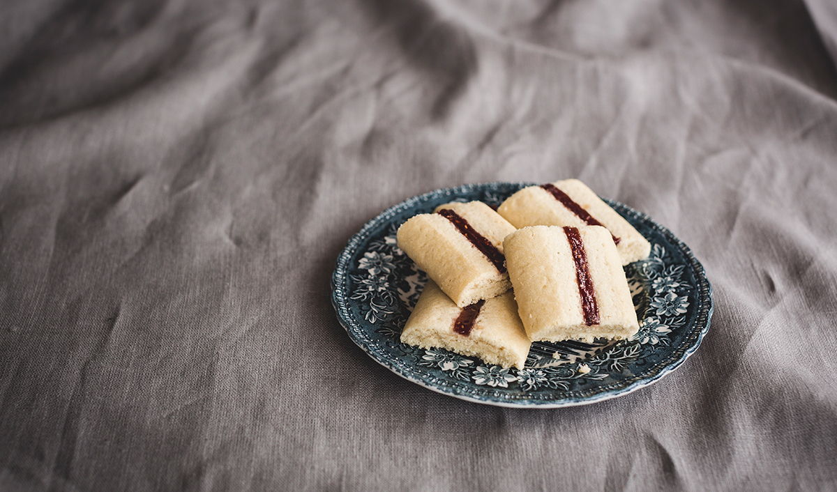 VETEmjöl, margarin (vegetabilisk olja (raps, kokos), vatten, fullhärdad vegetabilisk olja (raps), salt, emulgeringsmedel E471, antioxidationsmedel E330, arom, vitamin A), socker, hallonsylt (Socker, hallon (45%), vatten, förtjockningsmedel E440, surhetsreglerande medel E331, E330, E333, konserveringsmedel E202, arom.), ÄGG, KORNmalt, hjorthornssalt, Mjölbehandlingsmedel (E300).Näringsvärde per 100g