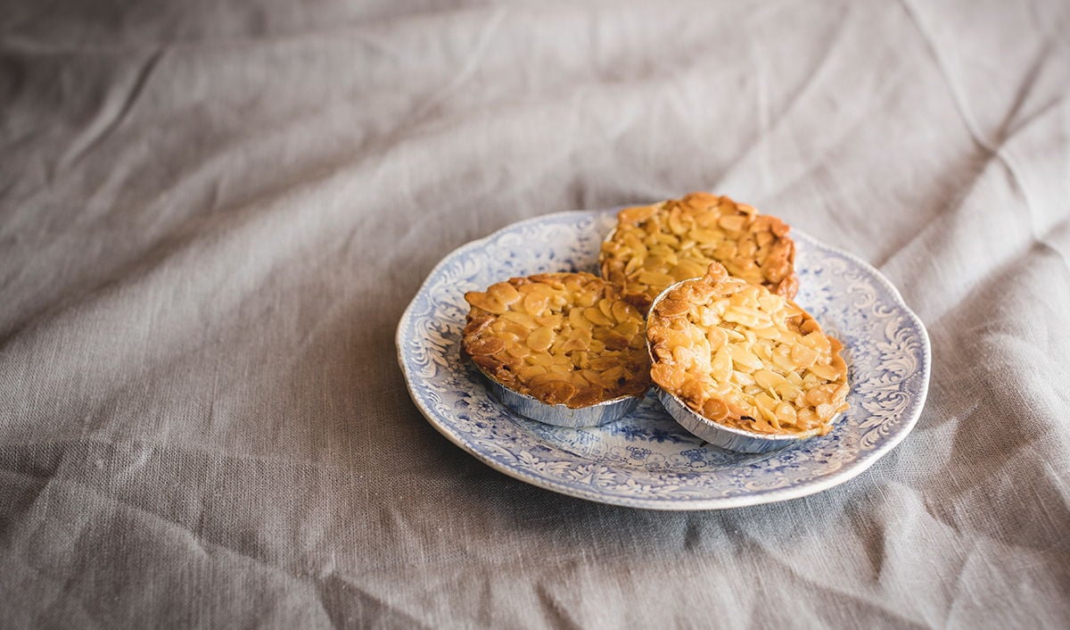 Dekormassa (socker, margarin (vegetabiliskt fett/olja (palm, palmkärn, shea), vatten, salt, emulgeringsmedel (E471, E475 av veg. fett), arom, antioxidationsmedel (E330), färgämne (E160a)), glukossirap, VETEmjöl, emulgeringsmedel (E471), färgämne (E150c), aromer), mandel skalad hyvlad (MANDEL (100%)), konditorimargarin palmfritt (emulgeringsmedel (E471, E322), emulgeringsmedel (E475), färgämne (E160a), naturlig arom, rapsolja, salt 1,2%, surhetsreglerande medel (E330), vatten, vegetabiliskt fett (palm, kokos)), ÄGG, VETEmjöl, KORNmalt, arom, bakpulver, emulgeringsmedel (E471), fuktighetsbevarande medel (sorbitol), fullhärdat vegetabiliskt fett(kokos,raps), färgämne (E160a), glykossirap, hjorthornssalt, invertsockersirap, MANDEL, Mjölbehandlingsmedel (E300), mördegsform ( tosca) (VETEmjöl, mjölbehandlingsmedel [E300], vatten, sa, salt, socker, strösocker, surhetsreglerande medel (E330), vatten.Näringsvärde per 100g