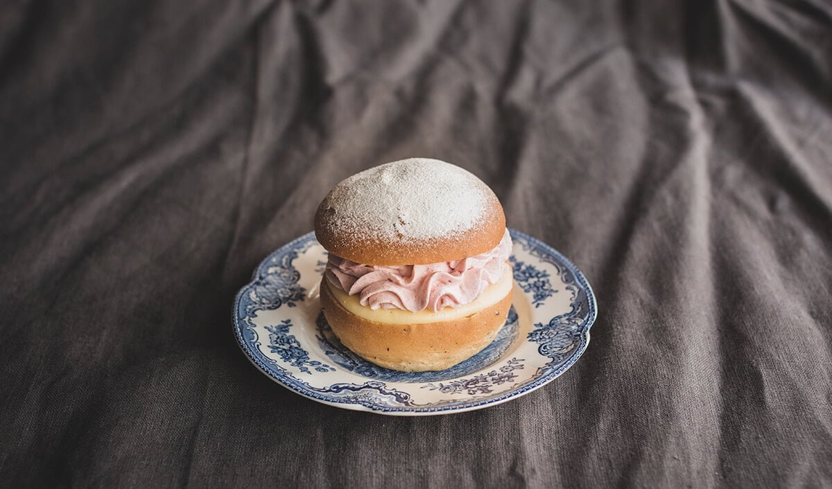GRÄDDE, kallrörd vaniljkräm (Vatten, socker, kärnMJÖLKspulver, vegetabilisk fett (kokos) , modifierad stärkelse E1442, konserveringsmedel E202, salt, vaniljarom, färgämne E160a, E101.), VETEmjöl, vatten, hallonsylt (Socker, hallon (45%), vatten, förtjockningsmedel E440, surhetsreglerande medel E331, E330, E333, konserveringsmedel E202, arom.), rapsolja, sirap, HAVREmjöl, jäst, KORNmalt, VETEgluten, kardemumma, salt, dekorations florsocker (strösocker, majsstärkelse, vegetabiliskt fett (palm)), socker, arom, Mjölbehandlingsmedel (E300).Hallon-vaniljsemla 4% hallonsylt, 28% vaniljkräm.